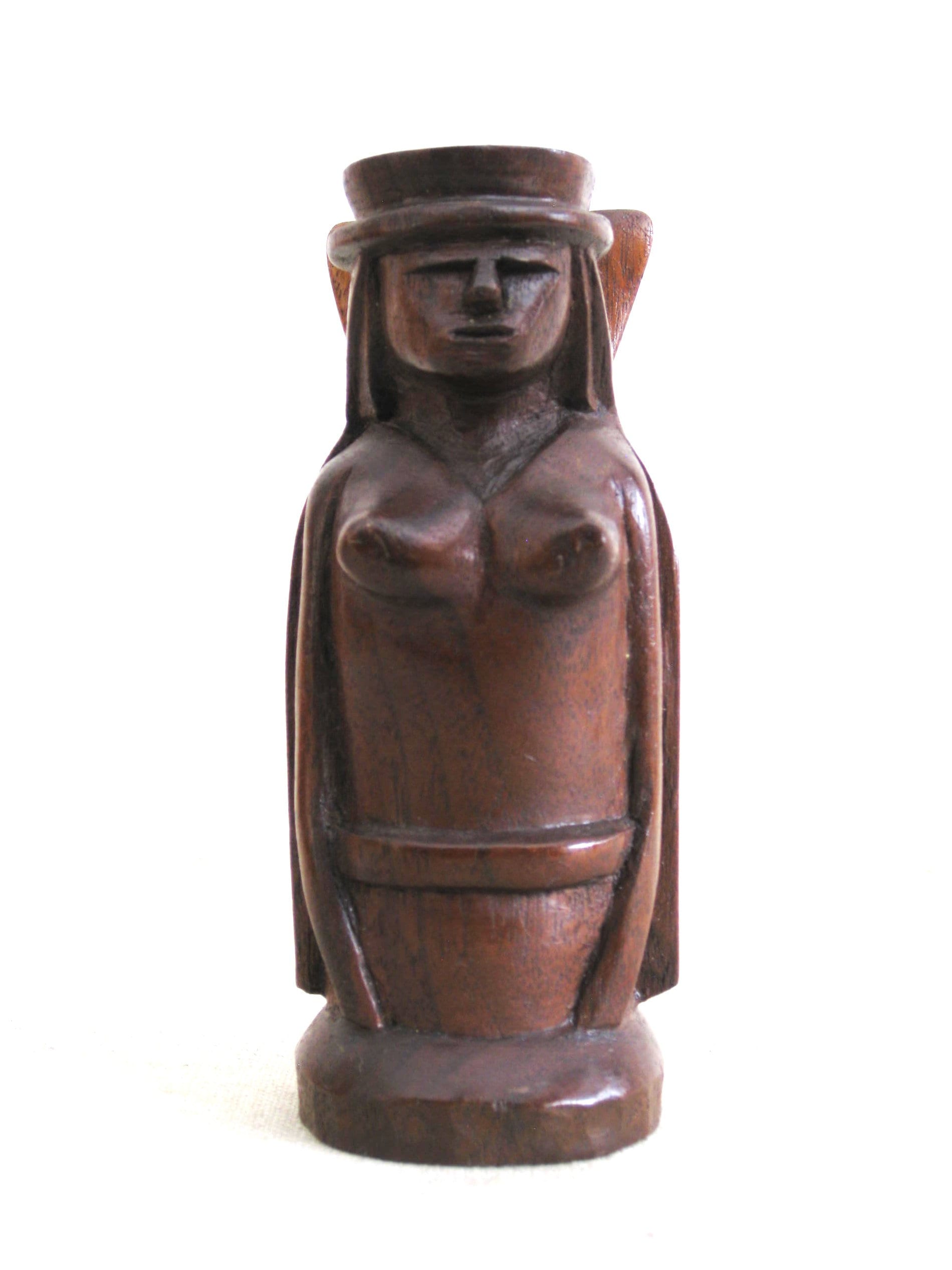 *Charming Vintage Folk Art Figure Carving. Wooden Female Portrait Wood Sculpture has great details and a rich naturally aged patina. Original carving may have been part of a Chess Set at one time, as I acquired several of these in different forms, but by the same hand, with similar aesthetics. Perfect for Library to Rustic Cabin Décor.