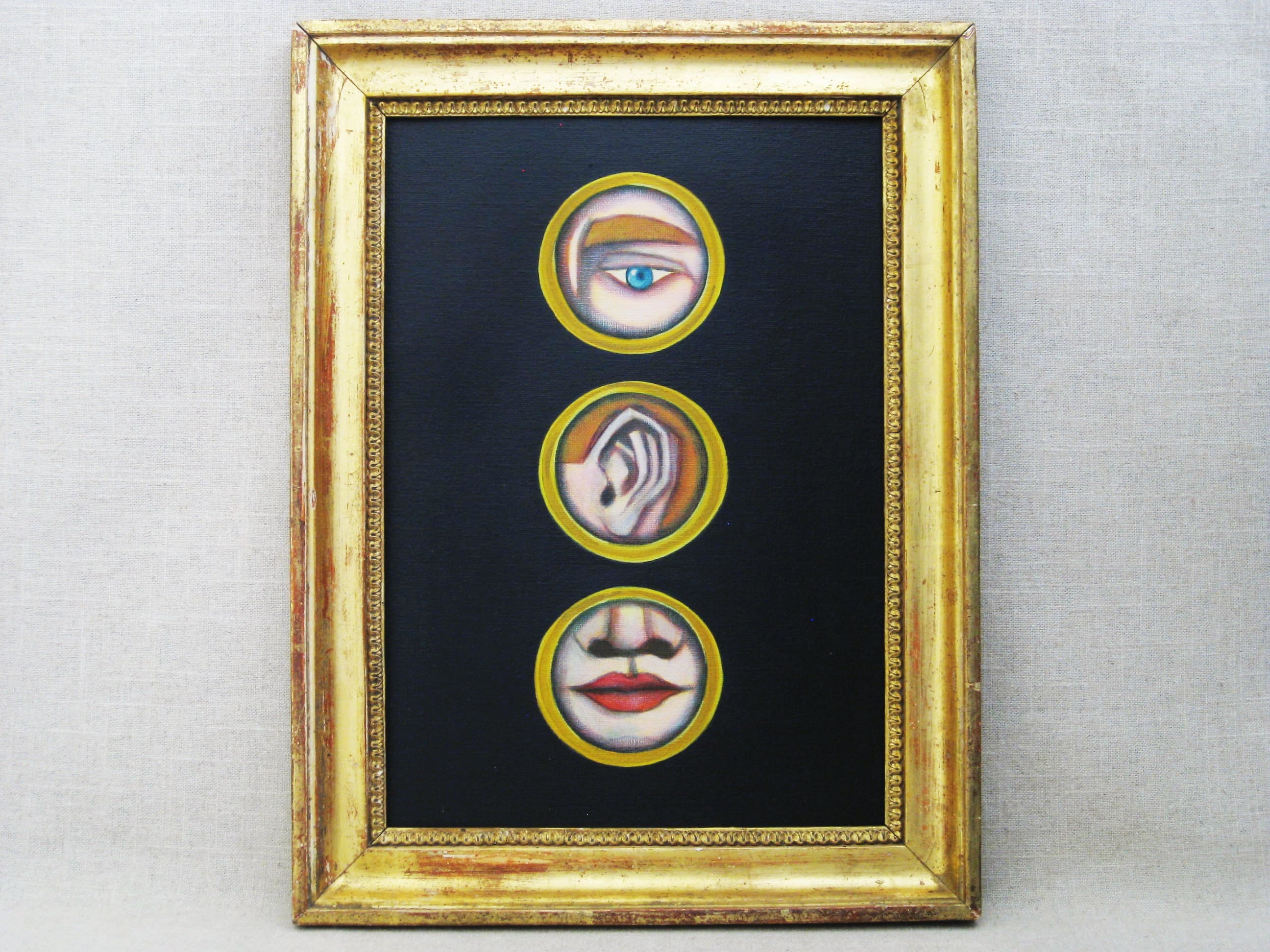 *"Lover's Eye" Painting / Male Portrait, by Wil Shepherd Studio. These Small Original Fine Art Paintings where first brought to popularity in the late 18th century (more info below). Framed in a Vintage Ornate Gilt finish, wooden frame. Perfect Romantic Wall Décor or gift.