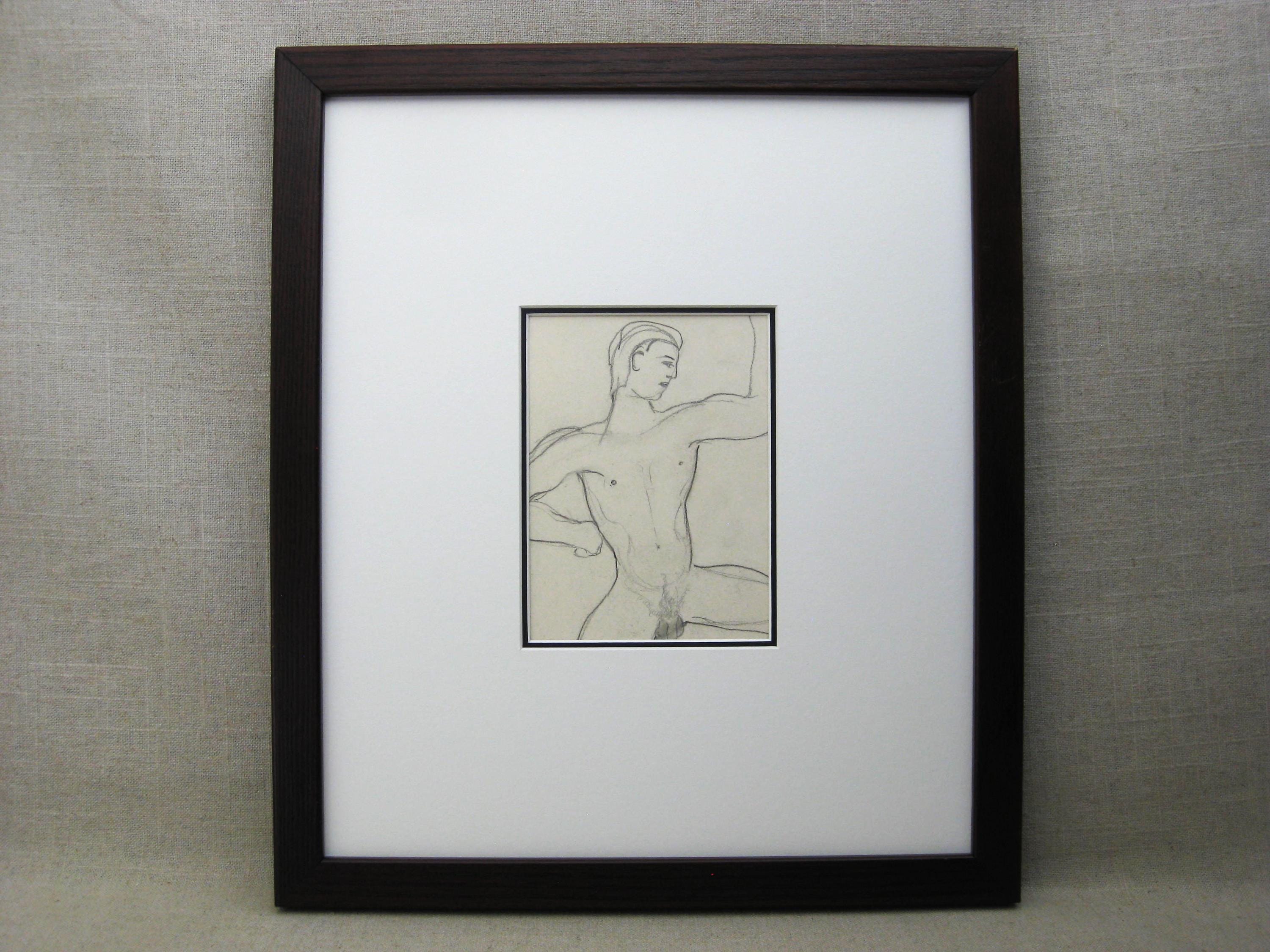 *Original Male Nude Portrait Drawing. Terrific Mid-Century Framed Pencil Sketch. Looks like a Study. From a portfolio of works on paper spanning a 3 quarters of a century. Mid-Century Original Fine Art done with pencil on paper. Framed in modern vintage wooden, piece is not signed.. Small intimate portrait of Nude male figure.