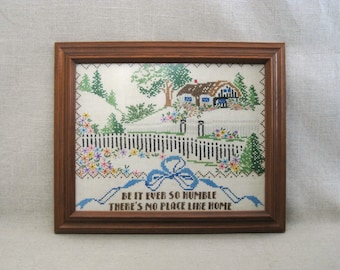 Vintage Cross Stitch, 1959 Hand Embroidery House Portrait, Mid-Century